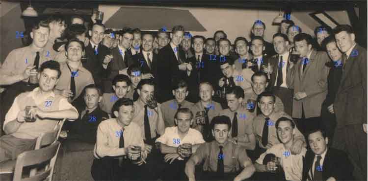 25. Dennis Welch, 26. "Darkie" Jarvis, 27. Eddie ?, 28. "Smudger" Smith, 29. Terry Walters,