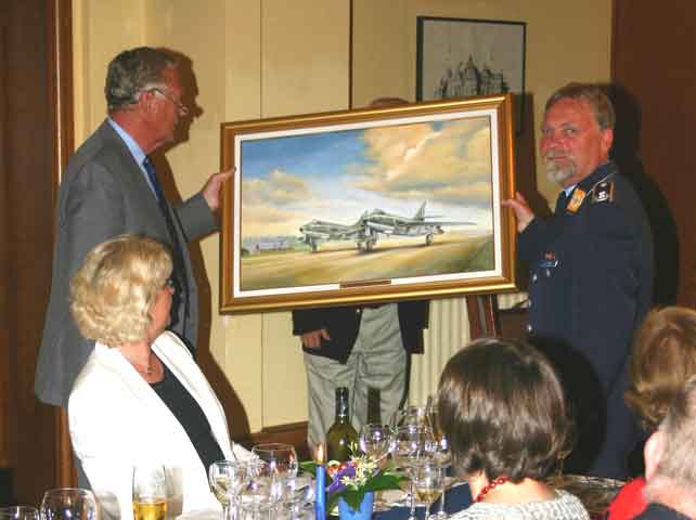 oil painting to Col. Karl-Heinz Kubriak, watched from left to right by Frau Angela Dankwardt, Mayoress of Jever, Heather Meierjohann