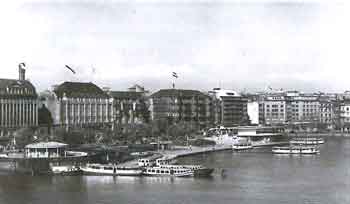 Looking across the Binnen Alster in 1953. The Streits Hotel is one of the buildings on the right.